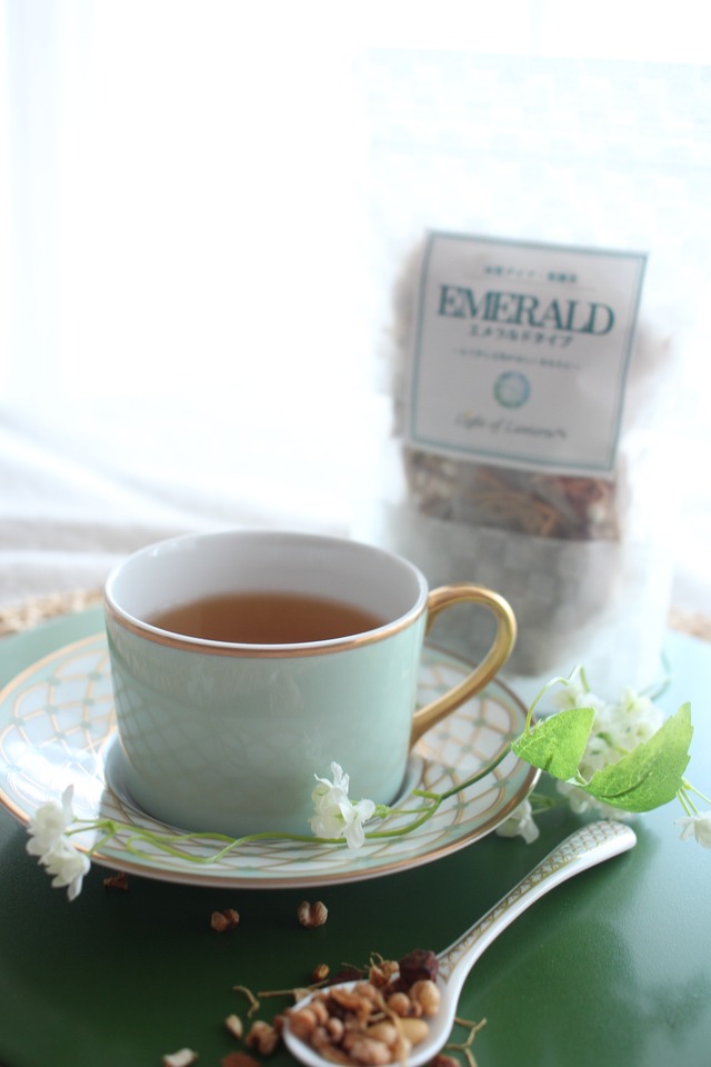 〜もう少し元気がほしいあなたに〜 体質タイプに合わせ、薬膳素材をブレンドしたお茶です。 エメラルドタイプはもう少し元気がほしいなという時におすすめしたい薬膳茶。 身体に元気をつけたい薬膳の時によく用いられる高麗人参を中心にブレンドしました。 甘みの中に香ばしさと少し苦味を感じる味わいです。 体質タイプでは「気力不足のエメラルド」タイプ (気虚体質)の方におすすめです。 ◎体質タイプの解説はこちらをご覧ください。 「気力不足のエメラルド」タイプ(気虚体質) https://tsubameyakuzen.com/contents_60.html 体質タイプとは https://tsubameyakuzen.com/contents_59.html <原材料> 高麗人参(中国)、白扁豆、はと麦、甘草、みかんの皮 (同一ラインでえび、かに、小麦、そば、卵、乳、落花生、くるみ、やまいも、りんごを使用した製品も製造しています) ※1包あたりの甘草の含有量は約0.5gです。 <内容量> 5包 <お召し上がり方> ①マグカップでの方法 本品1包と沸騰したてのお湯(200〜250ml)を入れ、5分間蒸らしてお召し上がりください。 半量ほどになったらさし湯をして再び蒸らすと長くおいしく召し上がれます。 (さし湯は2回ほど可能です) ②煎じる方法 鍋に本品1包と水500mlを入れ、火にかけて沸騰後弱火で5〜10分間煎じてください。 いずれも温かい状態で召し上がるのがおすすめです。 飲み終わった後のはと麦はお召し上がりになれます。 <注意事項> 妊娠中の方は飲用をお控えください。 *配送方法について 「ネコポス」「宅急便コンパクト」「宅急便」のいずれかでお送りします。 なお、ひとつの荷物でお送りできる点数は以下のとおりです。 ・ネコポス…合計2袋まで ・宅急便コンパクト…合計5袋まで 3袋以上ご注文の場合は「宅急便コンパクト」 6袋以上ご注文の場合は、「宅急便」をお選びください。